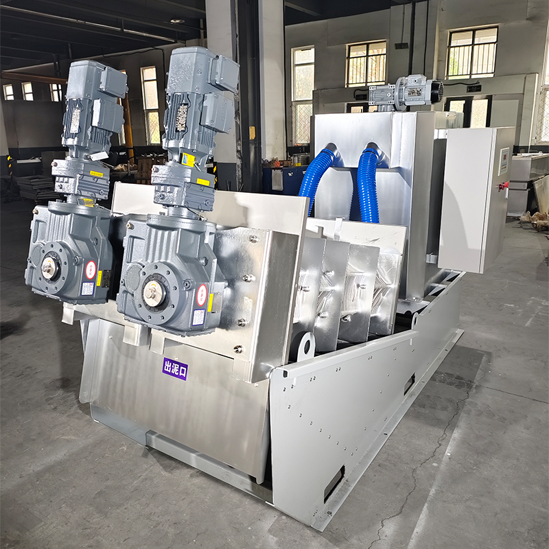 当螺旋推动轴转动时,设在推动轴外围的多重固活叠片相对移动,在重力作用下,水从相对移动的叠片间隙中滤出,实现浓缩。